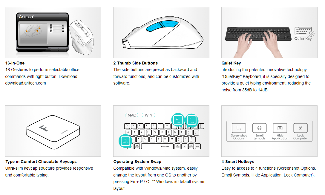 A4Tech FG2400 Air2 2.4G Wireless QuietKey Combo Set – Black