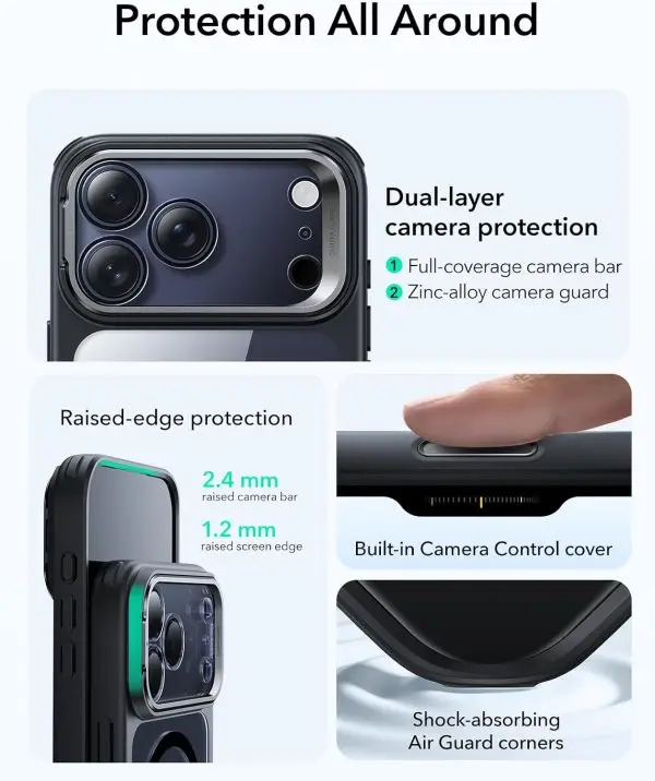 - Compatibility: only for iPhone 17 Pro Max; doesn’t include camera lens protectors or built-in camera lens protector