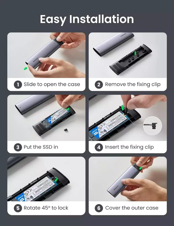 UGREEN M.2 SSD Enclosure is specially designed for B-Key & M+B Key SATA NGFF based SSD, including the size of 2280/2260/2242/2230 up to 2TB. Offering an easy way to connect M.2 SSD with your laptops, PS4, Xbox for ultra-fast data transmission, storage expansion, file back-up, data recovery, system upgrade, disk cloning. Does not support NVMe PCIe based M-Key and M&B-Key M.2 SSD, M.2 PCIe AHCI SSD, mSATA SSD.